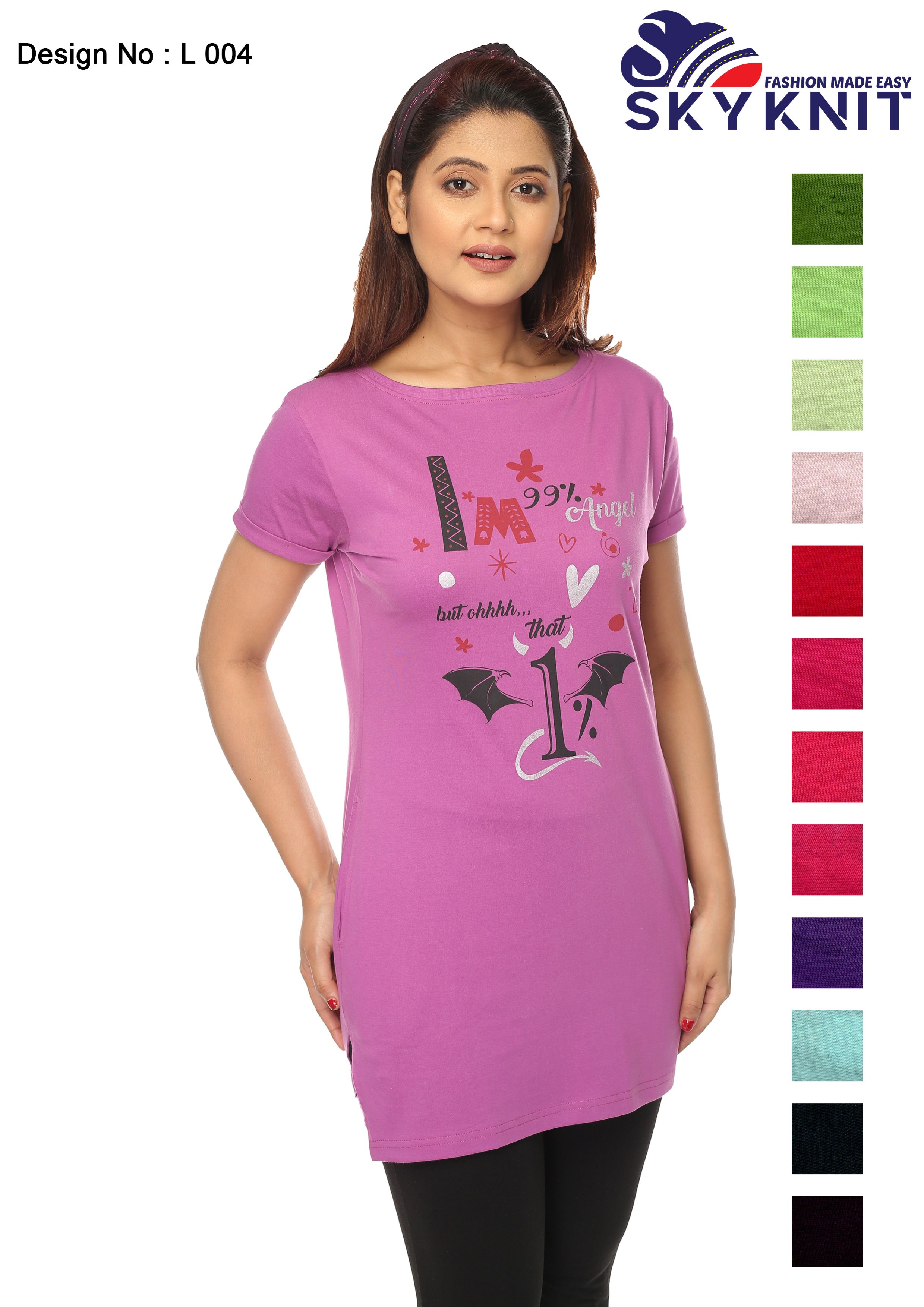D. L004 - Ladies Boatneck Long T-Shirt | skyknit yarn private limited